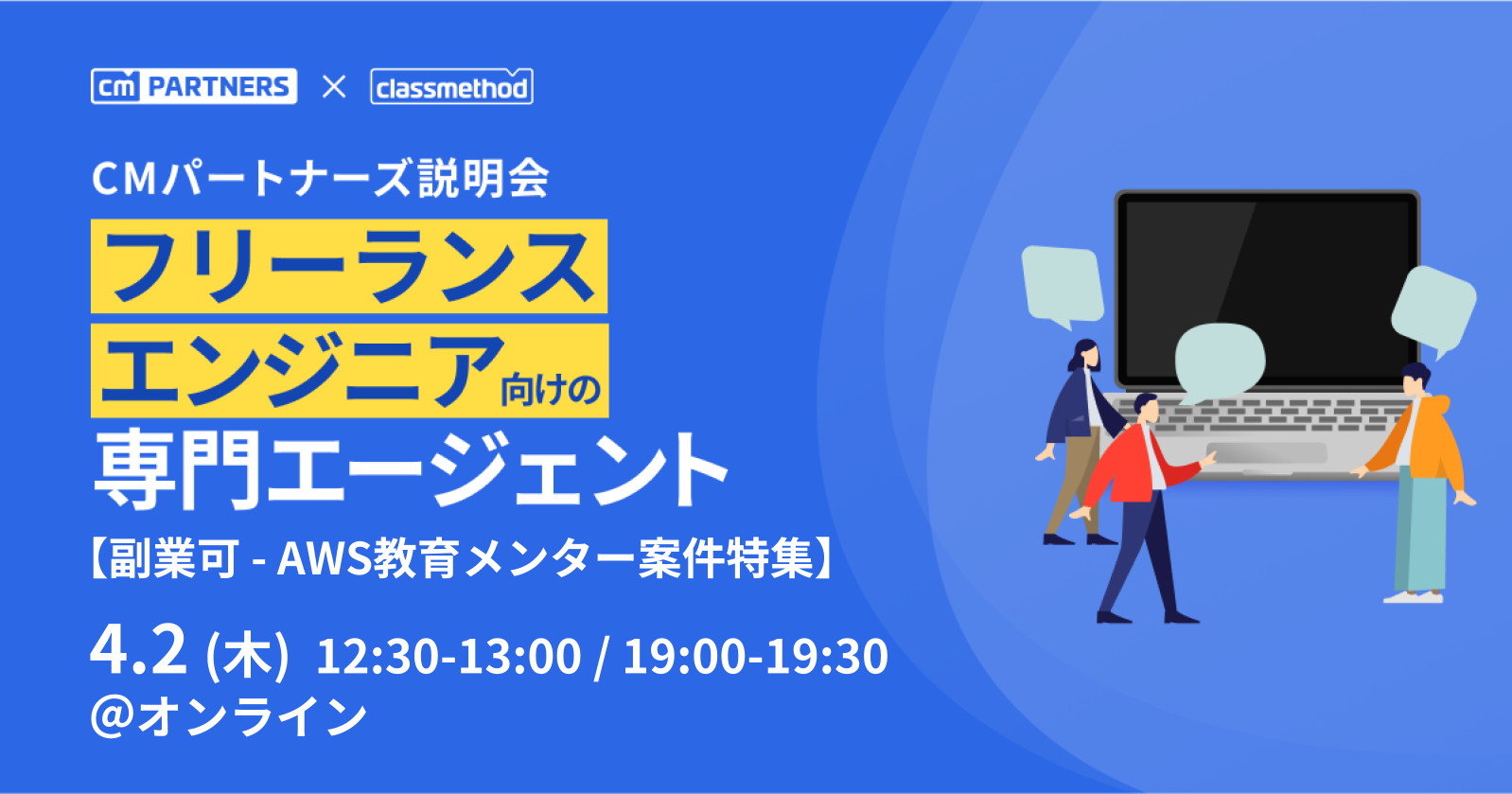 | 19:40 - 20:00 | Well Come to Classmethod Google Cloud Team <今回お話しするポジション> ・カスタマーソリューションエンジニア(Google Cloudテクニカルコンサルタント) |