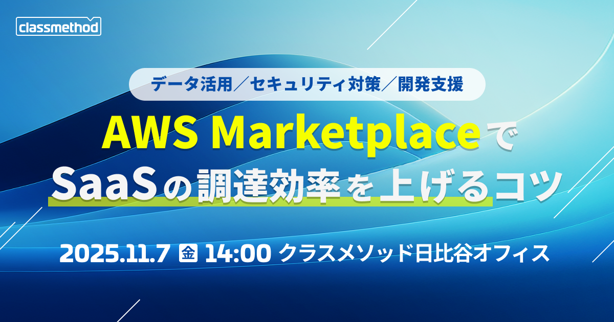 【11/7(金)東京】SaaS製品が1日で学べる! AWS MarketplaceでSaaSの調達効率を上げるコツ