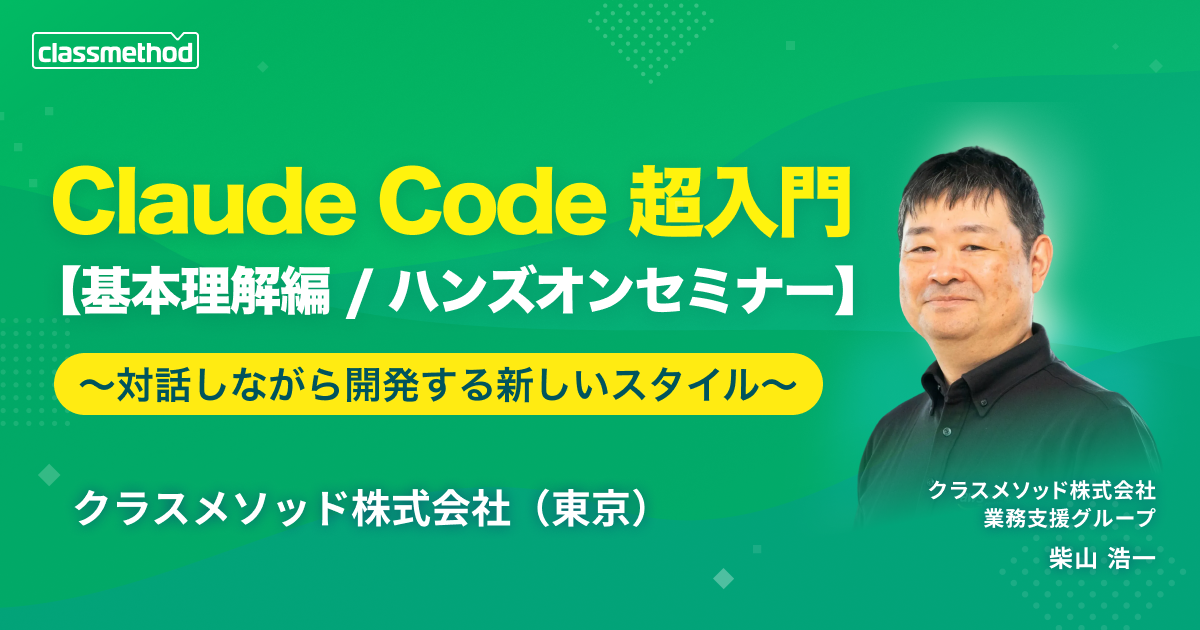 | 16:05〜16:40 | ClaudeCode超入門ー基本とハンズオン1(初期化とClaude.mdの役割) | 業務支援グループ 人材ソリューション部 教育事業チーム 柴山浩一 |