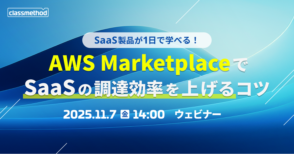 【11/7(金)】SaaS製品が1日で学べる! AWS MarketplaceでSaaSの調達効率を上げるコツ